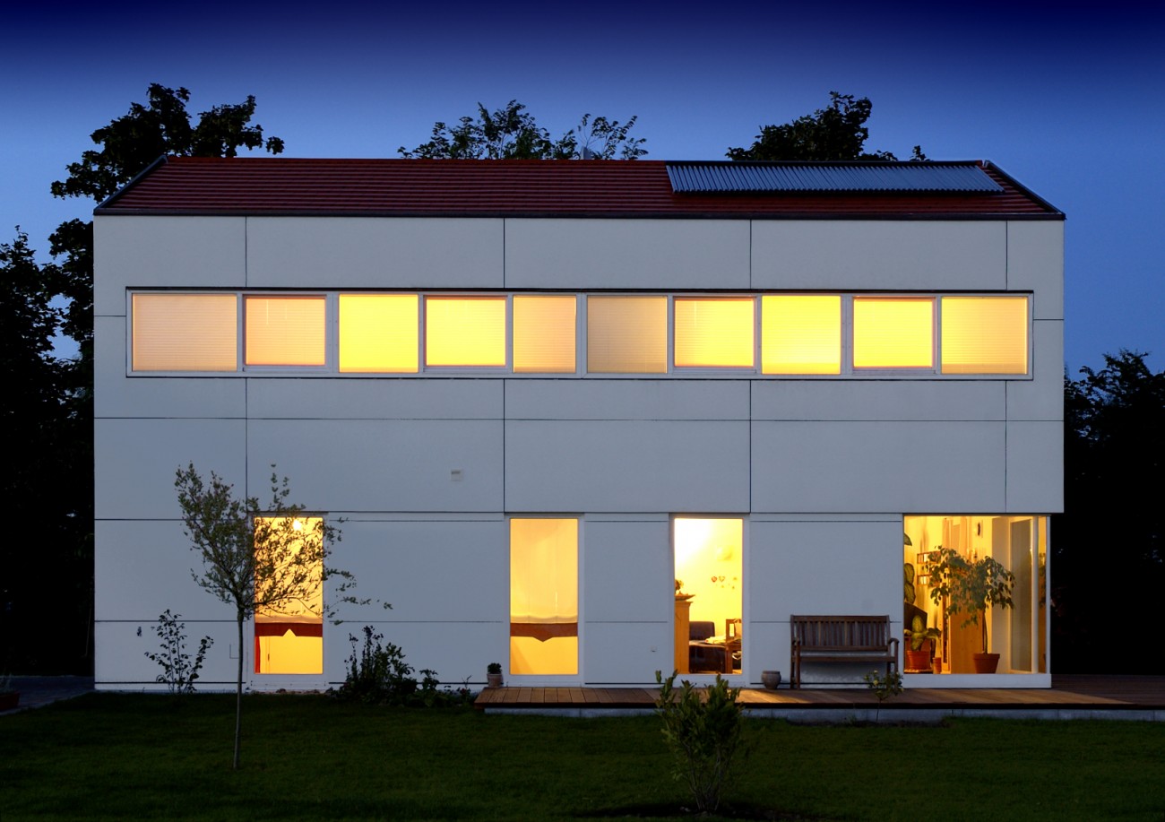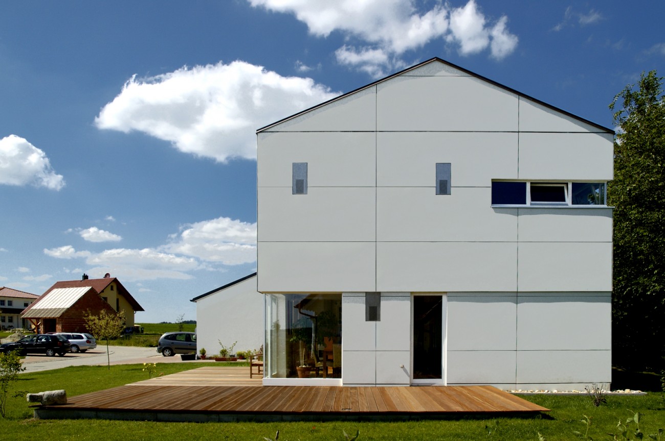 Niedrigstenergiehaus in TJI-Holzrahmenbauweise mit kontrollierter Raumlüftung.