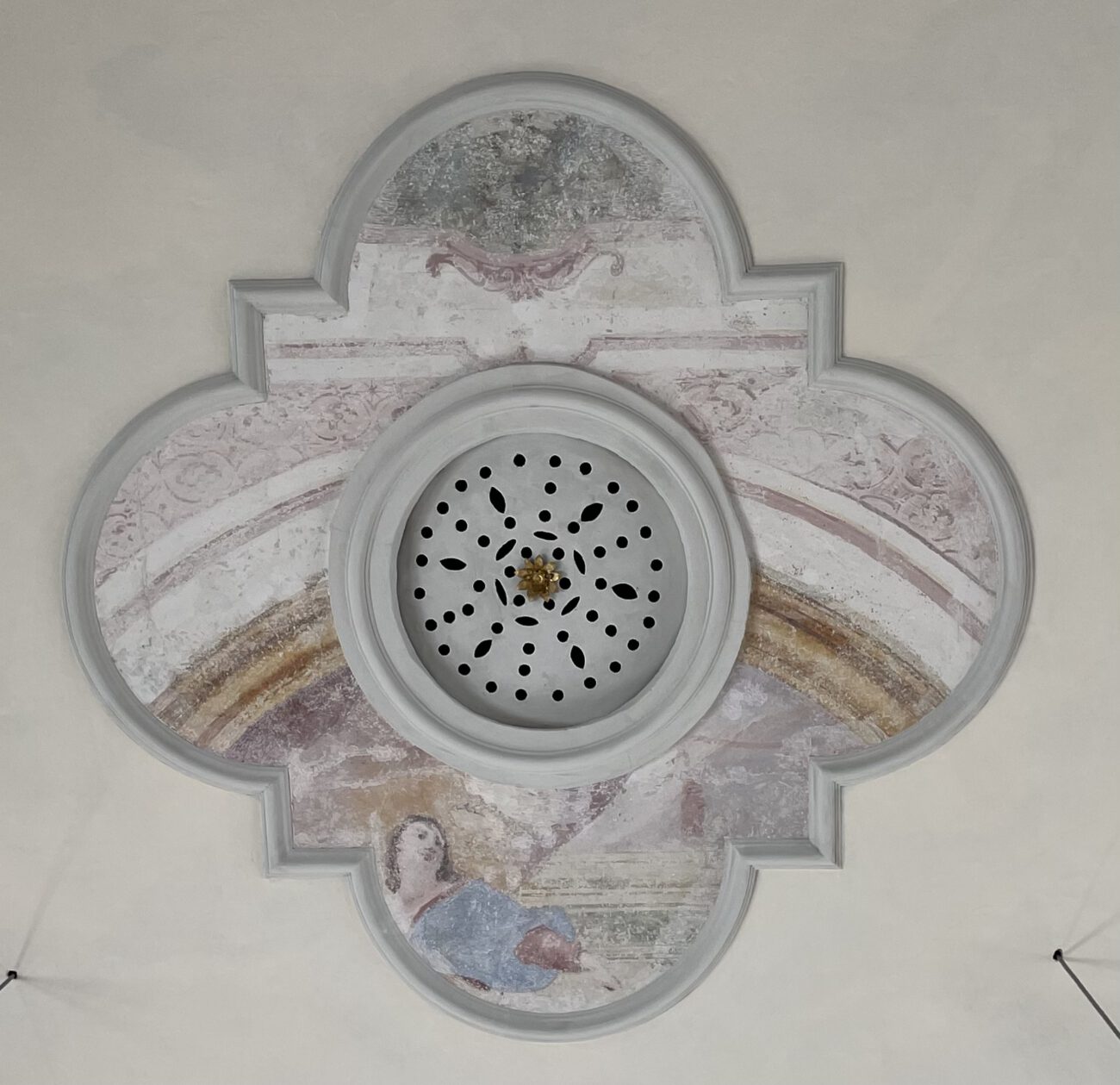 Dabei wurde die Raumschale und die Ausstattung restauriert und alte Farbfassungen wiederhergestellt.