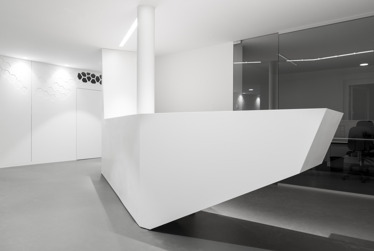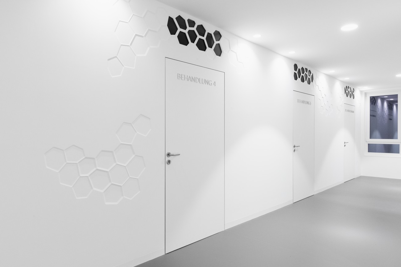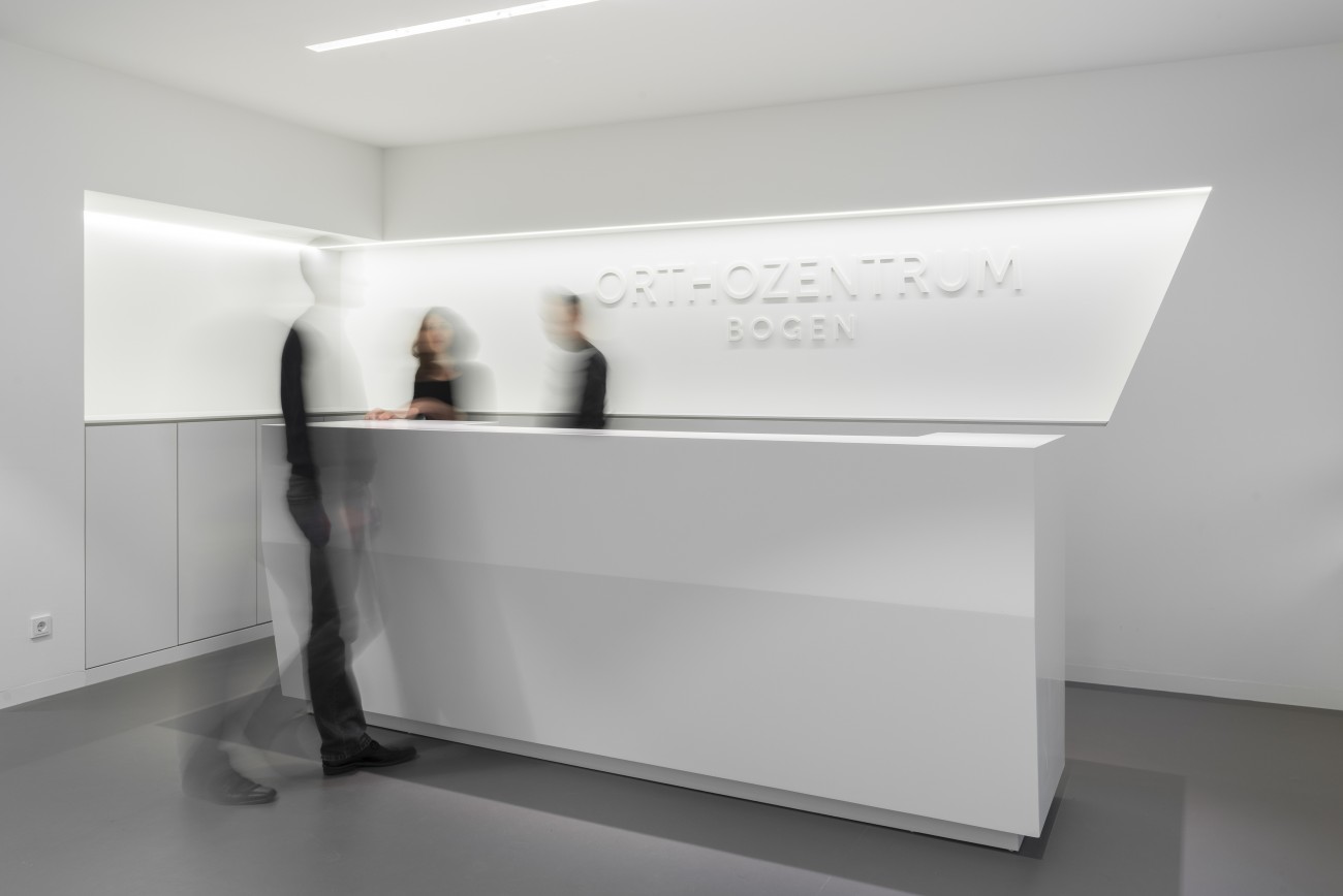 Orthopädisch-chirurgische Facharztpraxis in reinem Weiß. Reduktion, klare Linien, präzise Details.